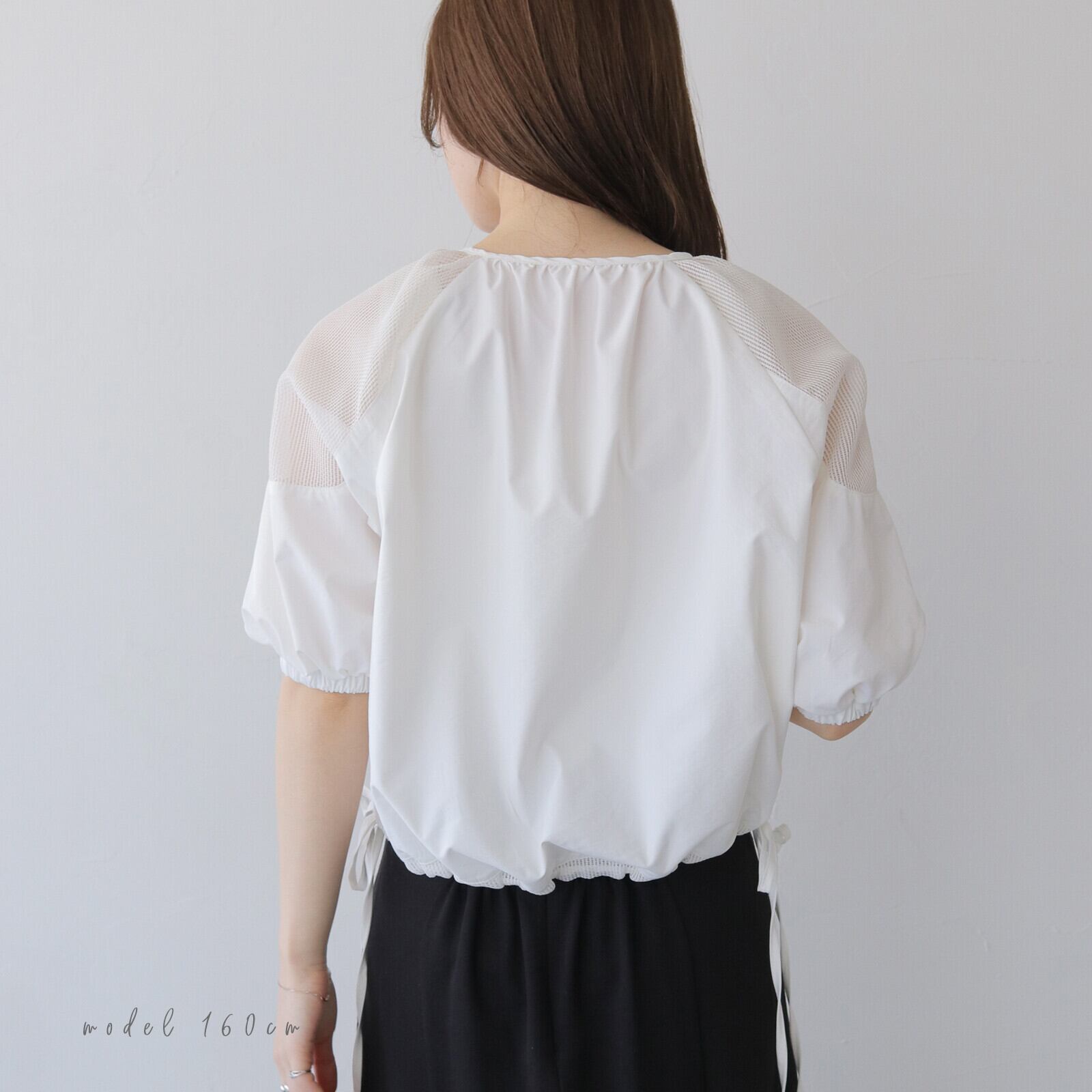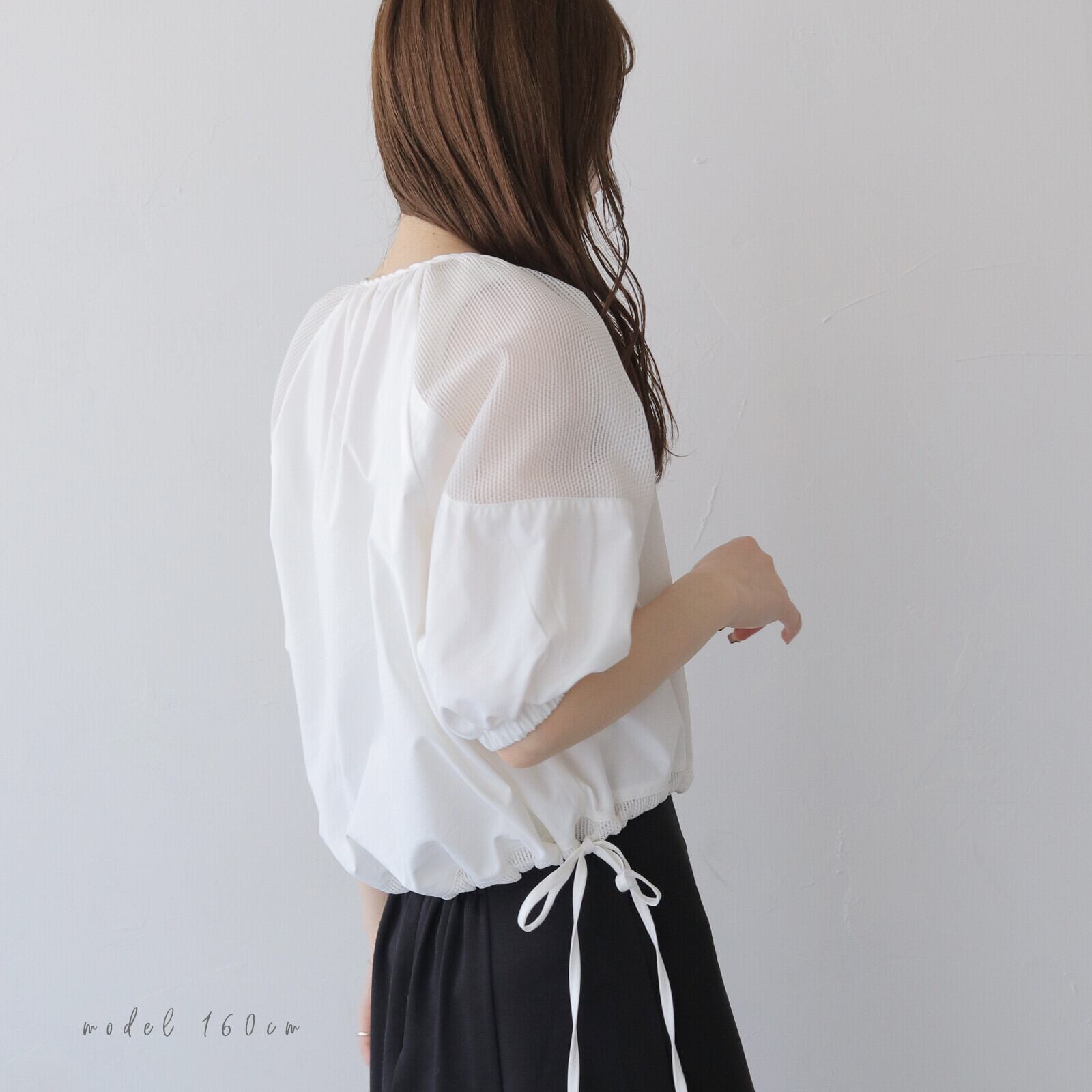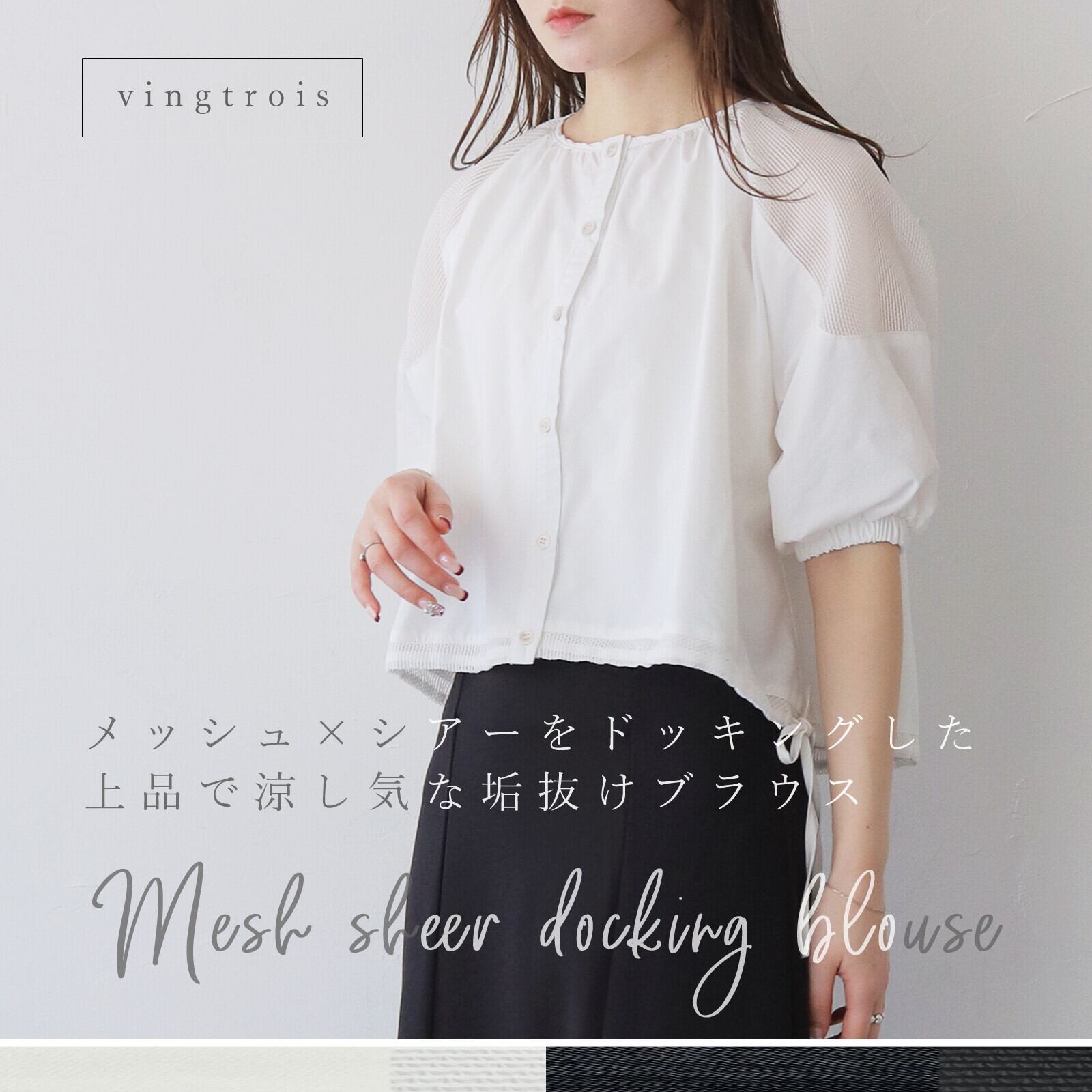 メッシュをドッキング 上品で涼し気な垢抜け シアーブラウスMesh sheer docking blouse