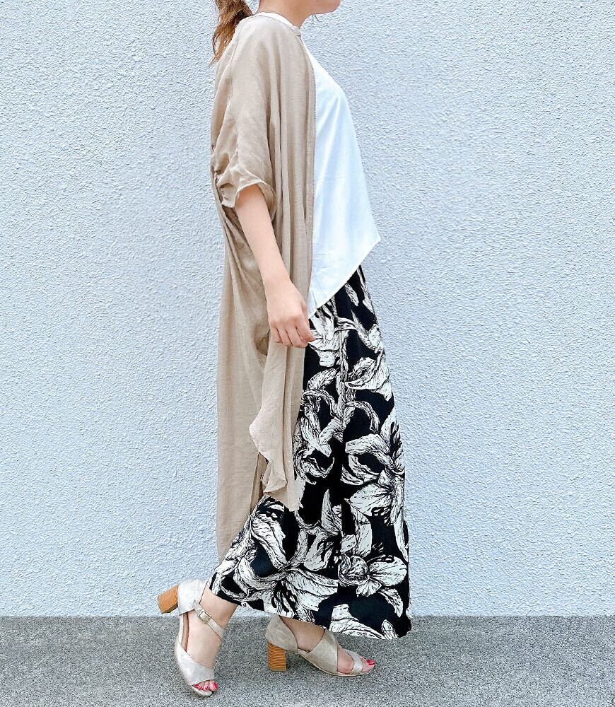 大きな花柄プリントが存在感のあるワイドパンツ。・軽やかで滑らかな肌触りの涼感生地・裏地がないので暑い季節でも快適に過ごせます。・フロントタックがこなれ感を演出・ラインを拾いにくいフレアシルエットでおしゃれに体型カバーができるのも魅力です。